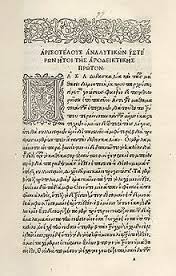 le célèbre philosophe. C’était donc lui-même un humanisme, proche de ces milieux d’avant-garde intellectuel et technique. Le premier livre qu’il imprime est d’ailleurs le signe de sa profession : c’est une grammaire latine à l’usage de son élève en 1493. Mais la vraie passion d’Aldo Manuzio était la Grèce antique et sa culture. Il se spécialisa donc rapidement dans l’impression de livres grecs, à la fois anciens comme des éditions d’Aristote et récent comme la grammaire grecque de Constantin Lascaris, helléniste reconnu exilé depuis la chute de Constantinople. C’est pour ce travail que Manuzio, aidé de Francesco Griffo, inventa les caractères typographiques grecs. Au Moyen Age, les livres en grecs étaient très rares, car peu de clercs maîtrisaient le grec ancien et surtout parce qu’il était très difficile en Europe de mettre la main sur des textes originaux en grecs. Ce sont les savants musulmans, qui bien plus versés dans les langues anciennes et orientales, ont permis par leurs traductions du grec en arabe, la diffusion des textes philosophiques antiques, traduits en Europe de l’arabe au latin.