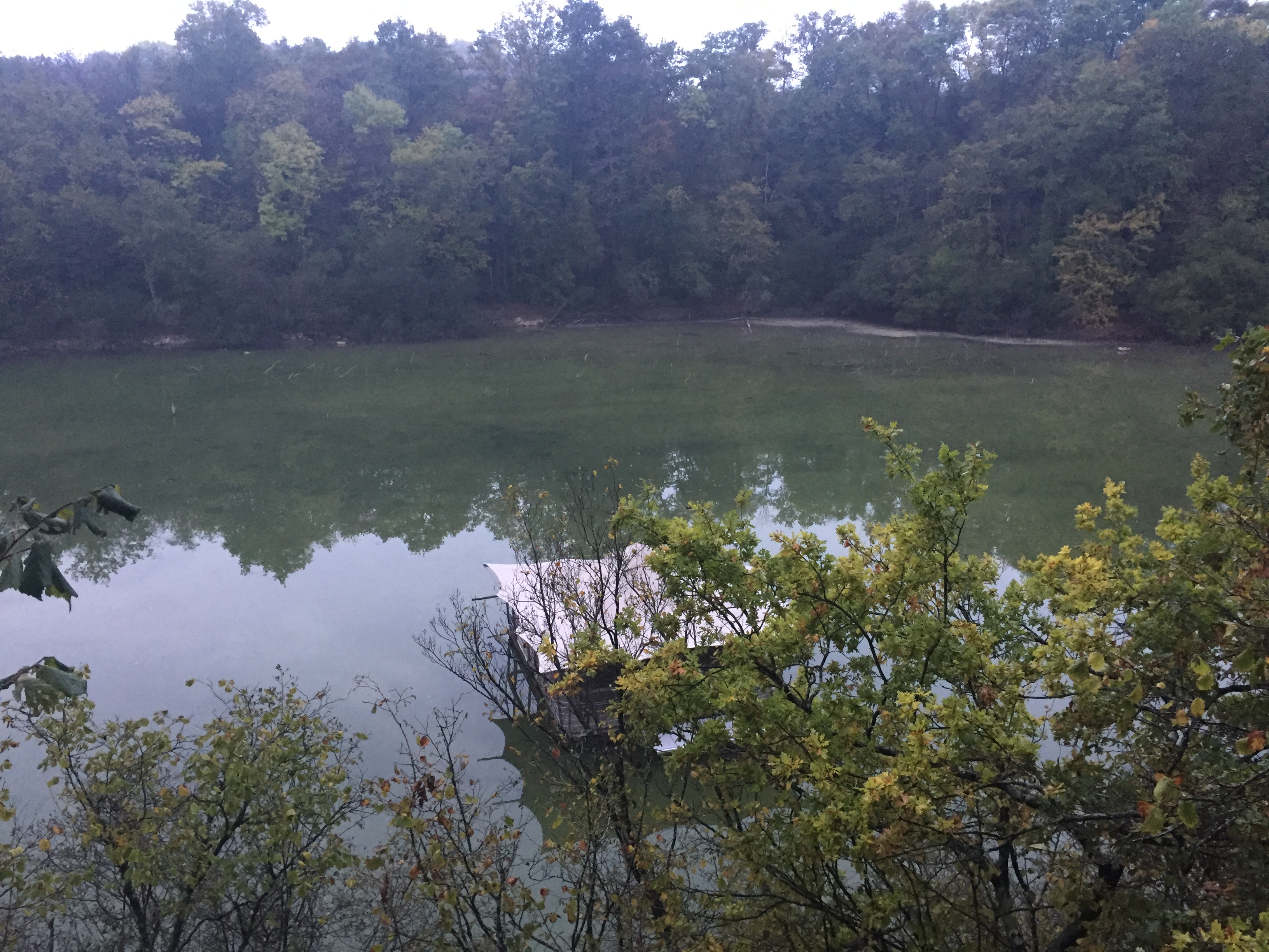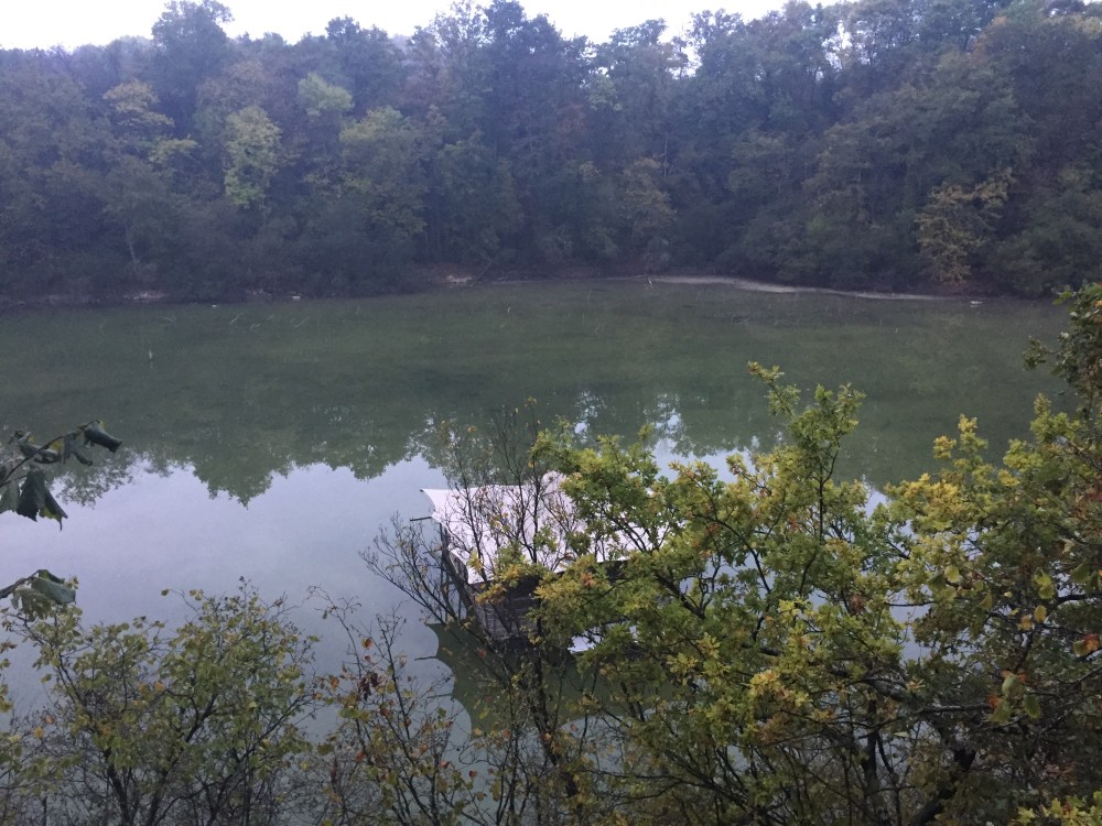 Pour l’anecdote, j’ai dormi dans une cabane falaise, qui donne sur un trou d’eau sur lequel se trouve les deux maisons flottantes, et j’y est mal dormi ! Ce n’est pas que je n’ai pas l’habitude du calme, mais c’est plutôt que j’ai été constamment réveillée tout au long de la nuit par les écureuils qui font leurs réserves pour l’hiver (rien de que de plus normal) et qui filent au-dessus de nos têtes pour chercher des noix et des glands. Sauf qu’ils en laissent tomber régulièrement et quand une noix tombe sur le toit d’une cabane en bois, en pleine nuit et dans un silence plutôt bienfaisant, cela provoque un réveil vraiment désagréable, avec le cœur qui palpite parce que le son ressemble totalement au bruit d’une détonation ! Cela ne m’empêchera pas de vouloir revenir à Echologia, peut-être au printemps quand les écureuils n’auront plus de soucis économiques, pour découvrir plus largement le département de la Mayenne.