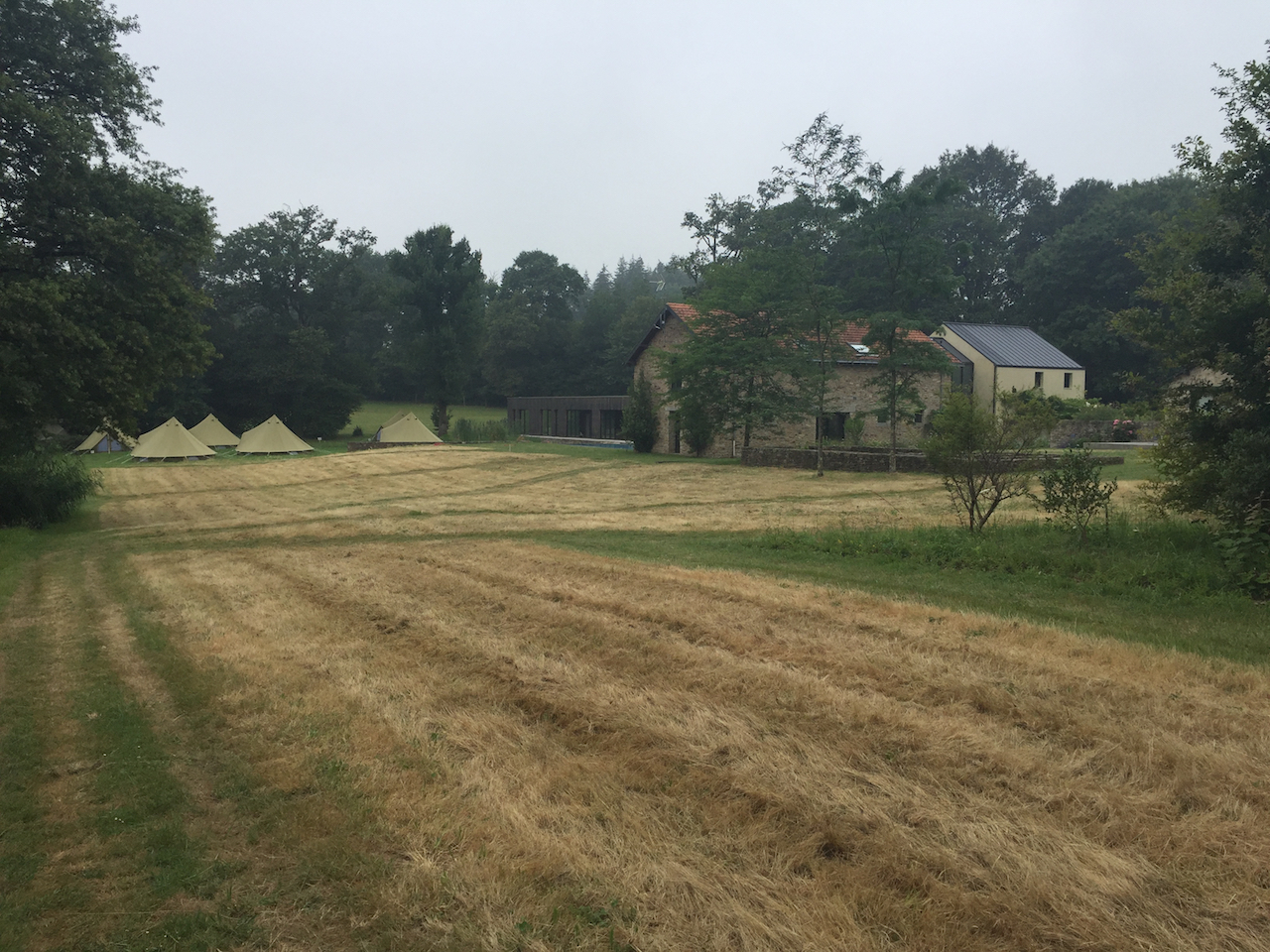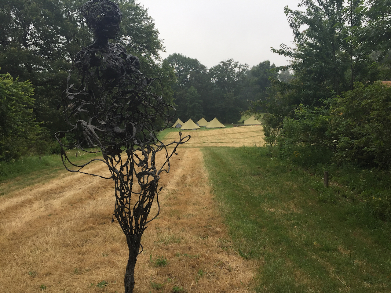 J’ai beau habiter à quelques kilomètres de là, je vis encerclée de champs et de vie, alors que la zone humide, la zone à protéger a été préservée du remembrement et de l’agriculture, puisqu’elle était vouée à la bétonisation du futur aéroport. C’est le paradoxe et la chance de Notre-Dame des Landes. Quand je suis arrivée le matin, il était pourtant 10h, et il y avait encore cette atmosphère mystérieuse et brumeuse que j’aime tant dans ce coin de campagne. Une sorte de micro-climat où l’humidité remonte du sol à l’aube et nimbe les paysages d’un souffle de dragon. Le lieu a donc été aménagé depuis longtemps, et on trouve une ferme en lien avec le centre équestre voisin, des tentes pour héberger des visiteurs, des hangars et des maisons où l’on peut aussi recevoir du public.