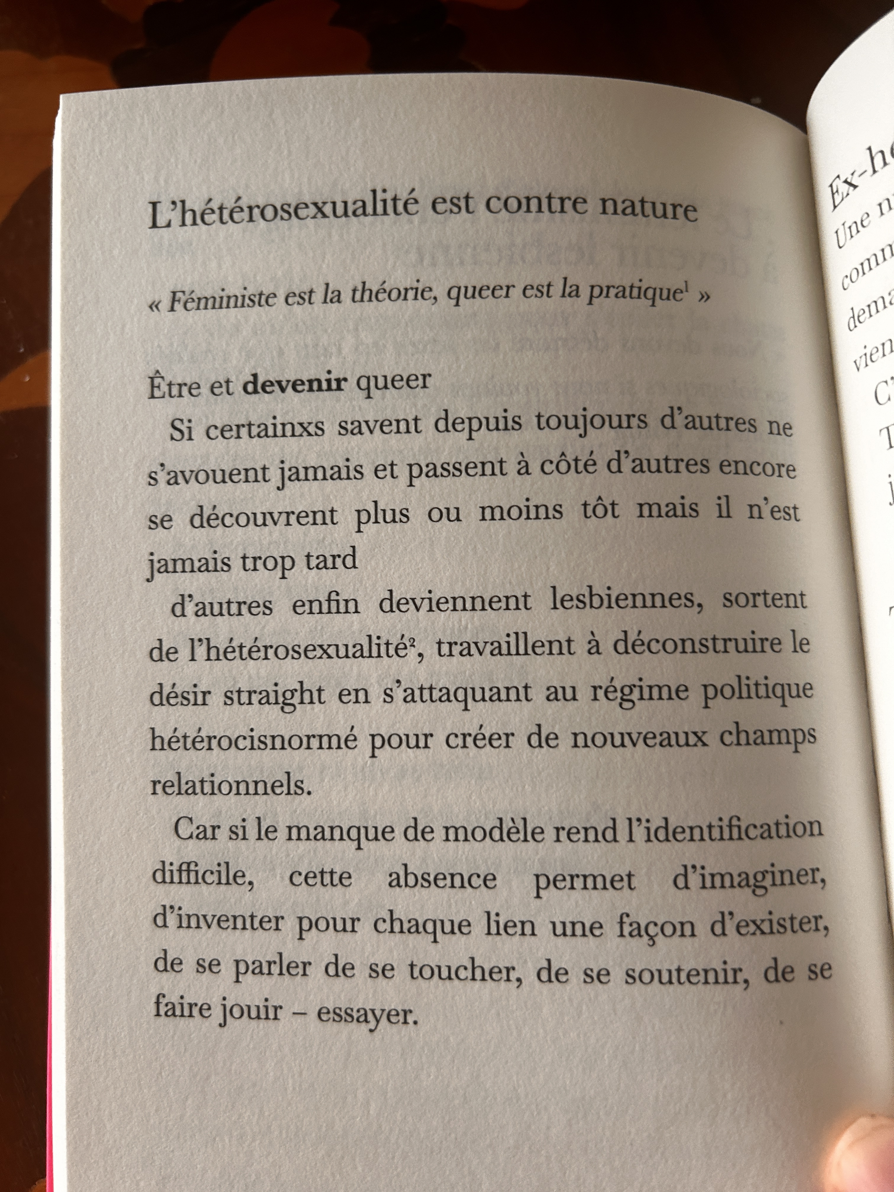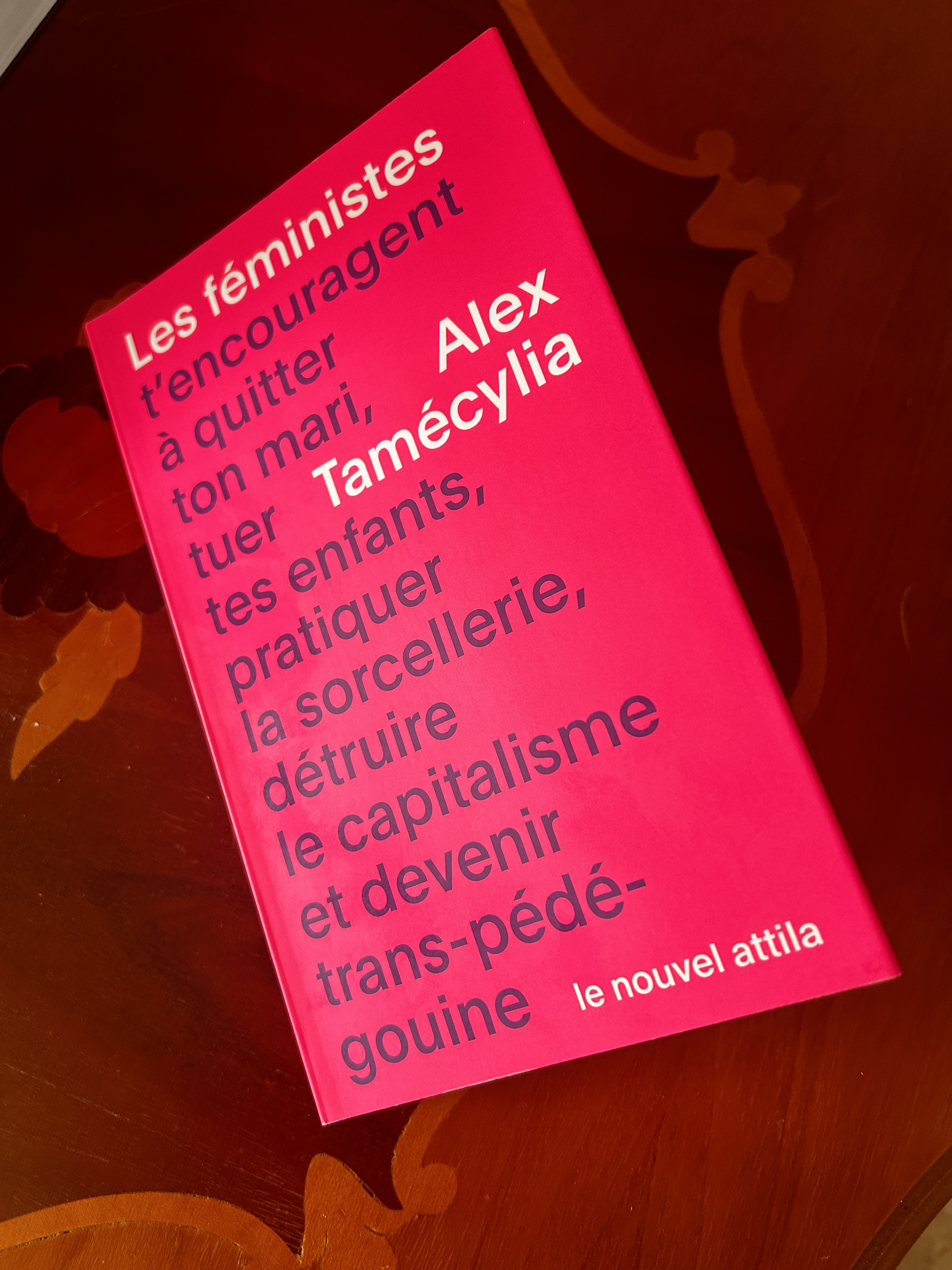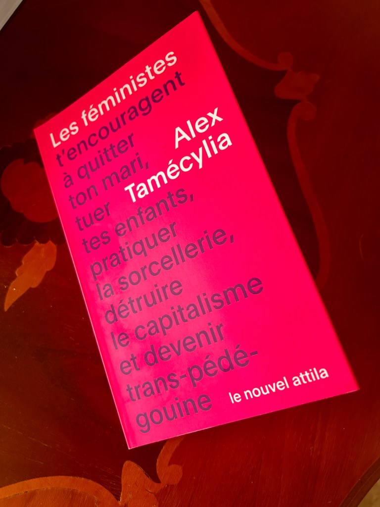Le texte d’Alex Tamécylia est en fait très personnel, on sent dans ces pages limpides à défaut d’être fluides, qu’elle nous conte son propre parcours, celui de beaucoup de femmes en fait qui se sont construites entre agressions sexuelles par un ou des hommes, injonctions phénoménales des sociétés patriarcales qui obligent les femmes à se mettre en couple hétéro et à procréer, puis qui, parfois, se libèrent des schémas, mais pas toujours. Elle se moque aussi (un peu) des tendances très faciles : être sorcière c’est à la mode, même si on n’a pas de cheveux blancs ni de chat noir (ce qui est mon cas), on joue à la queer attitude alors qu’être queer est une rébellion qui dans la plupart des pays aux régimes politiques peu rassurants vous amène à votre perte physique et psychologique. Mais en fait, Alex Tamécylia est aussi tendre avec ses sœurs qui cherchent une porte de sortie à tout ce merdier et qui n’ont pas la chance d’être lesbiennes !