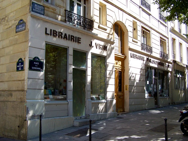Je continue mes pérégrinations libresques dans les librairies de mon cœur. Nous restons à Paris, dans une librairie emblématique du Quartier Latin et de la place de la Sorbonne : la librairie philosophique Vrin.